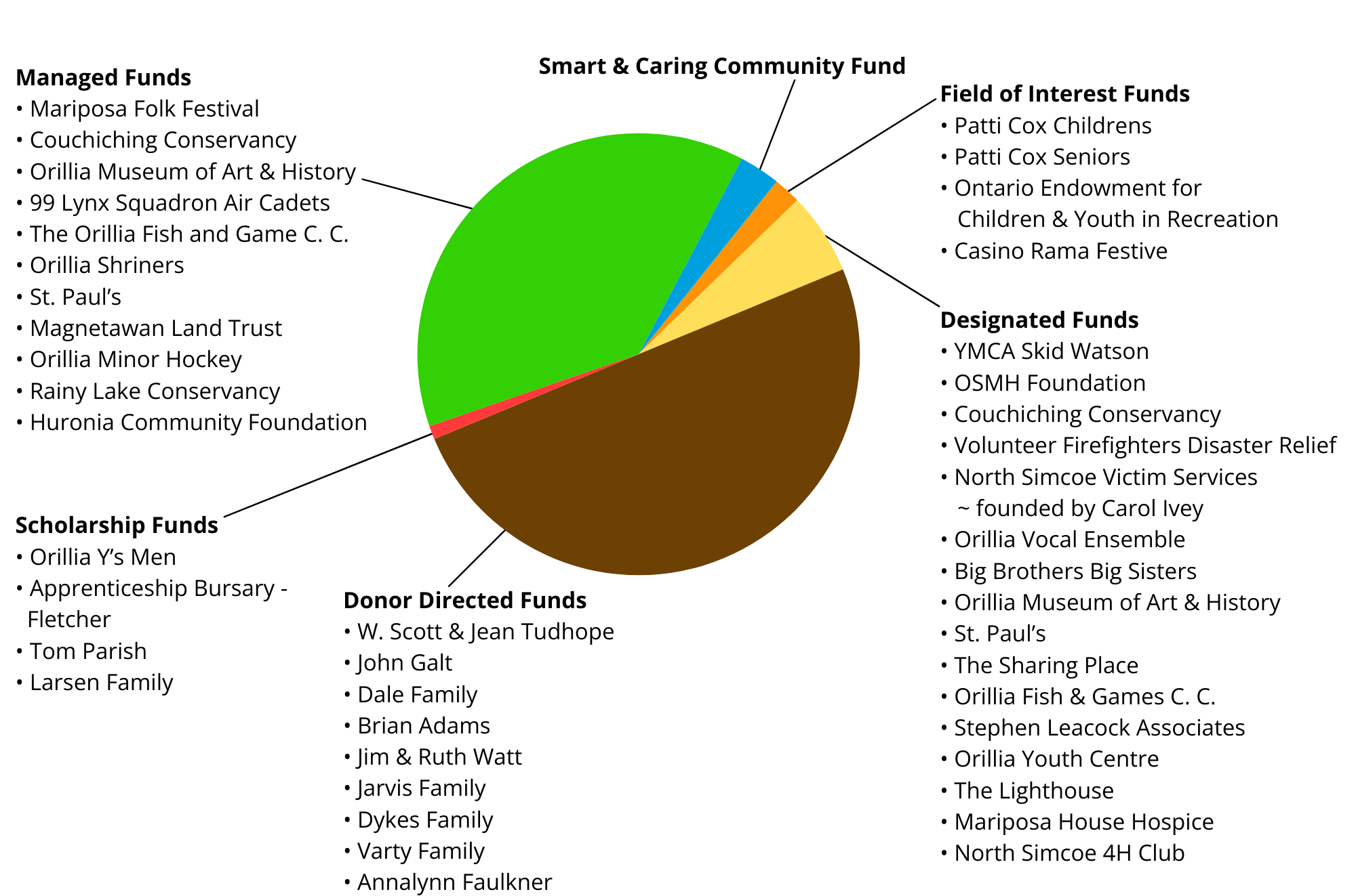The Community Foundation of Orillia and Area currently manages over $24.0 million of Endowment Funds contributed by local donors to 44 different Funds. Our investment management fees are low and our rate of return has been consistently above market averages.